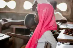 Based on household populations, about 50% of men and only 29% of women have attained secondary schooling or higher.[17] However, more girls are in school now and are continuing into secondary school. Over the timespan of 2008–2012, 4% more girls were enrolled in preschool than boys.[17] Net enrollment and attendance ratios for primary school were both about the same for boys and girls, net enrollment standing at about 84% and net attendance at about 73%.[17] Enrollment in secondary school for girls was slightly lower than for boys (44.4% vs. 48.1%), but girls' attendance was higher by about the same difference (39.7% vs. 43.6%).[17]
