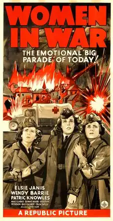 Women in War is a 1940 American war film about the nurses of the British Voluntary Aid Detachment during the Battle of France. Directed by John H. Auer and starring Wendy Barrie, Elsie Janis and Patric Knowles, it was nominated for an Oscar for Best Visual Effects (Howard Lydecker, William Bradford, Ellis J. Thackery, Herbert Norsch).[1][2]