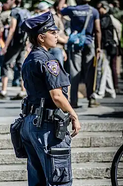 Large city departments have some of the highest percentages of female officers. This includes the New York Police Department (18% of uniformed officers in 2017)[44] the Los Angeles Police Department (18% in 2018)[45] and the Chicago Police Department (24% in 2010).[46]