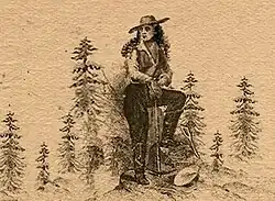 A few women came to California with their husbands and children and often helped pan for gold or earn cash while their husbands tried their luck panning for gold. Others came directly on their own to mine for gold. One Mexican woman was said to have brought several workers to the mines to pan gold for her; another made over $2,000 in forty-six days of mining.[30] Marie Suize was a gold miner and businesswoman from France who was arrested three times for wearing pants. One of the most popular ways for a woman to earn a living was to run a boarding house; the memoirist Mary Ballou was one example. Another was cooking or running a restaurant.[30] California was about the only place that women could earn wages higher than men for equivalent work because women were scarce, and the men would pay just to be in their company and have them do household tasks the men did not want or know how to do.[31] One enterprising woman earned $18,000 baking pies.[32][30]