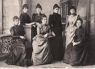 The 19th century was, in large part, a century of Westernization for the empire. Because of the relative stagnation of women's rights in the Ottoman Empire; European observers, as well as secret societies such as the Young Ottomans, stated a need for major reform.[21] The Young Ottomans criticized Ottoman customs that prevented developments in women's rights and talked about the importance of women in society, all while synthesizing said changes with Islamic values.[22] As a result of all these efforts, in the second half of the 19th century, midwife schools and secondary schools were opened.[23] These changes had many opponents, particularly conservatives such as Abdul Hamid II and many members of the Ulema, but also others; many scholars and authors, such as Ahmet Mithat Efendi, agreed with most of these changes, but resisted the sentiment that Ottomans should "implicitly accept Western superiority", while "explicitly rejecting" it, according to Ussama Makdisi.[21] To this day, the effect of Westernization on women's rights in the Ottoman Empire remains controversial among scholars.[21][24]