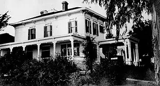 The home was built in 1882 for Capt. Frederick Woodbury, and his wife, Martha. The home was the headquarters for a ranch that included a two-story bunkhouse for the ranch hands. Citrus groves and vineyards were planted on the land.[2] Woodbury planted the deodar cedars that line the contemporary Santa Rosa Ave., also known as Christmas Tree Lane, another National Register site.[3] In 1892, Woodbury sold the home to a man named Walker, who in turn sold it to Hampton L. Story in 1894. During the decades following Story's death, the home became a coffee shop, sheriff's station, a fire engine house, office building and a tea house.[2] It is currently used as a filming location.