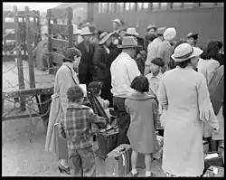 Families of Japanese ancestry being removed from Woodland, California, during World War II