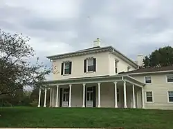 Woodlawn, is a historic slave plantation located at Columbia, Howard County, Maryland.[2] It is a two-story, stuccoed stone house built in 1840 with wood frame portions constructed about 1785. It was part of a 200-acre farm divided from larger parcels patented by the Dorsey family. The design reflects the transition between the Greek Revival and Italianate architecture styles. The home is associated with Henry Howard Owings, a prominent Howard County landowner and farmer, who also served as a judge of the Orphan's Court for Howard County. Owings purchased the property in 1858 and died at Woodlawn in 1869.[3] The former tobacco farm produced corn, oats, hay, and pork. The majority of the property surrounding Woodland and its slave quarters were subdivided by 1966 and purchased by Howard Research and Development for the planned community development Columbia, Maryland, leaving only 5 acres surrounded by multiple lots intended for development of an Oakland Ridge industrial center and equestrian center. The summer kitchen, smokehouse, corn crib and stable built about 1830 have been replaced by a parking lot.[4]