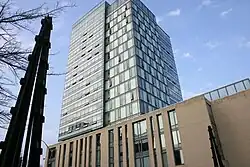 Woodsworth Residence opened in 2004 and was designed by the architectural firm Architects Alliance. The residence, located at 321 Bloor Street West, towers over the Perly-Rae gates at the northern entrance of the St. George Campus. The building is a 17-storey glass tower housing 371 students.