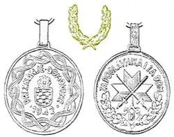 The Wound Medal (Croatian: Ranjenička kolajna) was established by the Independent State of Croatia "in honor of those who, as homeland defenders, were wounded or injured during combat with the enemy".