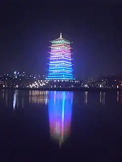 Chang'an Tower is located on a mountain and it was the theme site of the 2011 Expo. Also it was used as the viewing tower and visitors could go and see all the beautiful sights in all the parks. It remained the traditional tower's features in the Sui and Tang Dynasty and also applied the modern features. So it showed both the traditional Chinese architecture Culture and the modern city's new elements. It was the perfect combination of green building techniques and architectural art and was built to enhance the architectural culture of Xi'an city and became a landmark