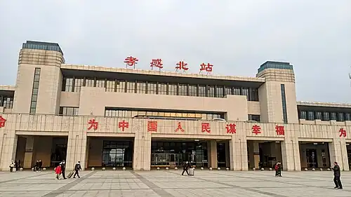 Xiaogan North railway station is a railway station located in Dawu County, Xiaogan, Hubei Province, China. Despite its name, the station is located in Dawu County, almost 100km away from downtown Xiaogan. It serves the Shijiazhuang–Wuhan high-speed railway, a segment of the Harbin–Hong Kong (Macau) corridor, and the Beijing-Guangzhou-Shenzhen-Hong Kong High-Speed Railway. It was opened on 28 September 2012.