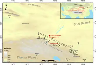 The Xichengyi culture (Ch:西城驿文化) was an ancient culture in the central Heihe River region of the Hexi Corridor, from 2,000 to 1,600 BCE.[2] It is contemporary with the Qijia culture to its southeast. It succeeded the Majiayao culture (2,300–2,000 BCE) in the area, and preceded the Siba culture.[1]