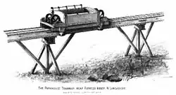 John Barraclough Fell designed and built in 1868 the original Yarlside Iron Mines tramway as a horse drawn monorail from an exchange siding at the Furness Railway to the Yarlside Iron Mines.[1]