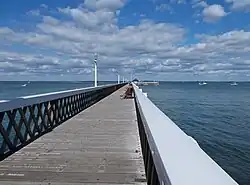 Yarmouth Pier was opened in 1876. It received Grade 2 listed status in 1975. Originally 685 ft (207.5m) long, it's now 609 ft (186m) but is still the longest timber pier in England open to the public, and also a docking point for the MV Balmoral and PS Waverley.
