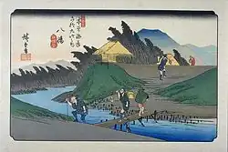 Hiroshige's print of Yawata-shuku, part of the series The Sixty-nine Stations of the Kiso Kaidō