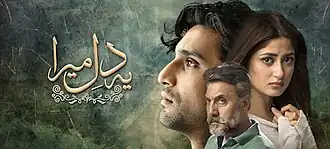 Yeh Dil Mera (Urdu: یہ دل میرا, lit.'This heart of mine') is a 2019 Pakistani romantic thriller television series that premiered on Hum TV on 30 October 2019.[2][3] It is directed by Aehsun Talish, written by Farhat Ishtiaq and produced by Momina Duraid under their banner MD Productions. The serial stars Ahad Raza Mir, Sajal Ali and Adnan Siddiqui in lead roles.[4][5][6][7]