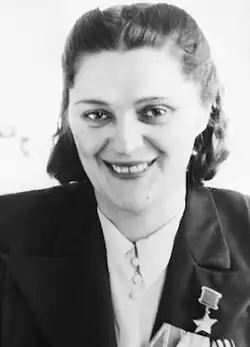 Yelena Grigoryevna Mazanik (Russian: Еле́на Григо́рьевна Маза́ник, Belarusian: Але́на Рыго́раўна Маза́нік, romanized: Aliena Ryhoraǔna Mazanik; 2 March 1914 – 7 April 1996) was a Soviet Belarusian partisan responsible for the assassination of Wilhelm Kube, General-Kommissar of Nazi-occupied Belarus, whom she killed by placing a small time-bomb under his bed while working for him as a housemaid. For assassinating him she and her co-conspirators were awarded the title Hero of the Soviet Union on 29 October 1943 by decree of the Supreme Soviet.[1] Her post-war life was spent as a librarian.