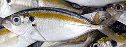 - ^ Tandon, K.K. (1960). "Biology and fishery of 'Choo Parai' Selaroides leptolepis (Cuvier and Valenciennes) 1. Food and feeding habits" (PDF). Indian Journal of Fisheries. 7 (1): 82–100. Retrieved 6 October 2012.