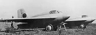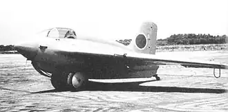 The J8M was to have simply been a licence-built Messerschmitt Me 163 Komet, but, due to difficulties in obtaining technical materials from Germany, it eventually had to be designed almost from scratch.[1] The MXY8 was designed in parallel with the J8M to validate the design and then to provide pilot training during the development of the actual interceptor.[2] The Army designation for the type was Ku-13.[3]