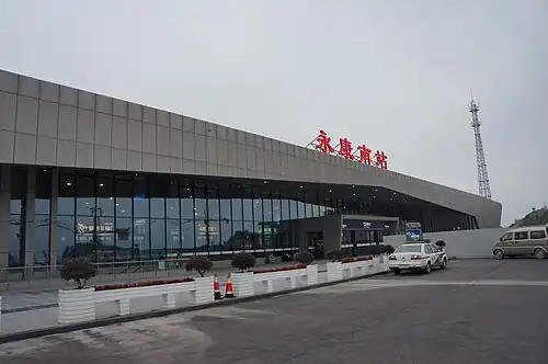 Yongkang South railway station (Chinese: 永康南站) is a railway station in Yongkang, Jinhua, Zhejiang, China. It is the only passenger railway station in the city. Freight is handled by Yongkang East.