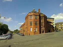 The building was designed by William Hunter McNab of the Leiper and McNab architectural firm, to serve as the headquarters of the 2nd Volunteer Battalion the Highland Light Infantry. It was completed with funds donated by Sir Thomas Lipton[1] in 1901.[2] This unit became the 6th (City of Glasgow) Battalion, The Highland Light Infantry (Territorial Force) in 1908.[3] The battalion was mobilised at the drill hall in August 1914 before being deployed to Gallipoli and then to the Western Front.[4] The battalion amalgamated with the 5th, 10th and 11th Battalions of the Highland Light Infantry to form the 5th/6th Battalion, the Highland Light Infantry at the Hill Street drill hall in 1947.[5]