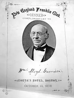 - Dinner of the New England Franklin Club, "complimentary to William Lloyd Garrison"[26]