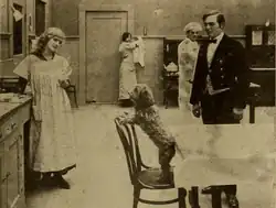 It transpires that Maud's father, George Horton, has been systematically robbing from the family, including stealing a bundle of securities from a safe during the ball. When the theft is discovered, a fight ensues between Horton and Mr. Disbrow. When the pocketbook containing the securities falls from Horton's pocket, Mary takes the opportunity to seize the securities, and also to break a vase upon Horton's head. In gratitude for her bravery and for saving the family's fortunes, the Disbrows approve of Mary's marriage to Harry.