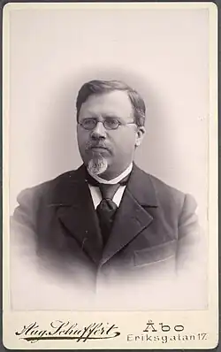 Baron, Active State Councillor Yrjö Koskinen (Y. K.) Yrjö-Koskinen (2 November 1854 – 12 January 1917; surname until 1882 Forsman) was a Finnish educator, civil servant and politician, born in Jakobstad. He was a member of the Diet of Finland in 1885, 1894, 1897, 1899, 1900, from 1904 to 1905 and from 1905 to 1906 and of the Parliament of Finland from 1907 to 1909 and from 1910 to 1911, representing the Finnish Party. He was a member of the Senate of Finland from 1908 to 1909. Yrjö Yrjö-Koskinen was the son of Yrjö Sakari Yrjö-Koskinen, the elder brother of Sakari Yrjö-Koskinen and the father of Aarno Yrjö-Koskinen.[1]