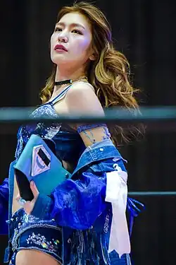 She is known for working into various of the promotion's signature events. One of them is DDT Peter Pan, making her first appearance at Ryōgoku Peter Pan 2018 from October 21 where she teamed up with Mina Shirakawa and Miyu Yamashita in a losing effort against Yuka Sakazaki, Mizuki and Shoko Nakajima as a result of a six-woman tag team match.[11] One year later at Wrestle Peter Pan 2019 on July 15, she participated in a Rumble rules match for the Ironman Heavymetalweight Championship won by Yukio Sakaguchi and also involving Hiroshi Yamato, Shiro Koshinaka, Joey Ryan, Gorgeous Matsuno and others.[12]