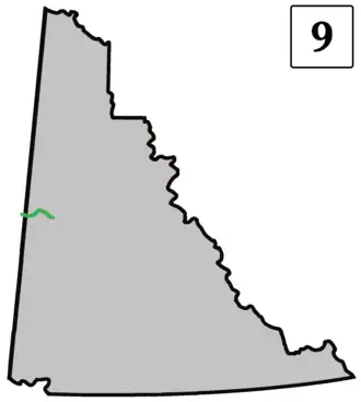 The Top of the World Highway is a 127 km-long (79 mi) highway, beginning at a junction with the Taylor Highway near the unincorporated community of Jack Wade, Alaska travelling east to its terminus at the ferry terminal in West Dawson, Yukon, on the western banks of the Yukon River. The highway has been in existence since at least 1955 and is only open during the summer months. The entire portion of the highway in Yukon is also known as Yukon Highway 9. The Alaska portion is part of Alaska Route 5 [3] and is a portion of the Taylor Highway Scenic Byway. [4]