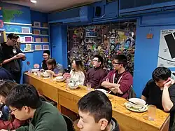 Yume Wo Katare has been described as not just being a restaurant, but a "dream factory" and a food-centered aspirational community.[8][2] Nishioka was deeply affected by the suicide of a partner in the comedy troupe he once performed with in Japan, and he has since made it his life's mission to help people achieve their dreams. To that end, the restaurant offers regular "dream workshops" in addition to its culinary offerings,[4] particularly targeting Japanese students in Cambridge to help them figure out their own life dreams and goals.[3]
