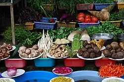 Yunnan is located in the Yunnan-Guizhou plateau, with an extended range of mountains, plains, and lakes, forming a colorful scenery and three-dimensional climate of tropical, subtropical, temperate, and cold zones.[8] This kind of diverse physiognomy and environment are beneficial to the growth of a variety of plants and animals. Yunnan is known as the "fungus kingdom," "plant kingdom," and "animal kingdom."[9] It is one of the regions with the most abundant edible wild fungus resources in China. There are more than 250 kinds of edible native fungus, among which common ones are bovine liver fungus, Qingtou fungus, chicken fir fungus, dried fungus, bamboo sun fungus, matsutake fungus and so on.