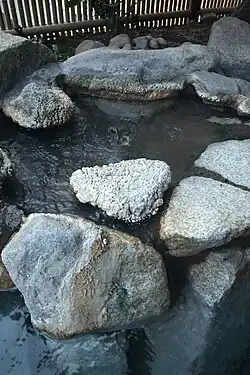 The hot spring water contains various minerals including sodium, calcium, and sulphur, and it is generally agreed to be beneficial for skin and circulation issues.[2]