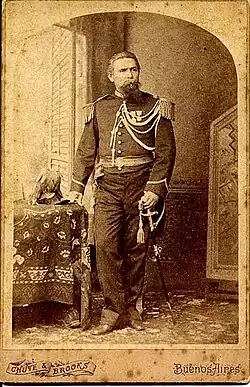 His military campaigns also include his participation in the Conquest of the Desert,[3] and the Conquest of the Chaco.[4] He was part of the troops loyal to the Government during Revolution of the Park, serving as head of the City Garrison participated in the Battle of Plaza Libertad against the radical revolutionaries.[5]