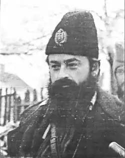 In accordance with the Chetniks' Greater Serbia ideology,[30] in November 1942, Ostojić was encouraged by Mihailović to wage a campaign of terror against the Muslim population living along the borders of Montenegro and the Sandžak, and subsequently reported that Chetniks had destroyed 21 villages and killed about 1,300 people.[31] Between 30 November and 2 December 1942, Ostojić represented Mihailović at the Conference of Young Chetnik Intellectuals of Montenegro at the village of Šahovići near Bijelo Polje in the Sandžak, which was also attended by the Montenegrin Chetnik leader Pavle Đurišić.[32] The conference was dominated by Đurišić and its resolutions "expressed extremism and intolerance",[33] as well as an agenda which was focused on restoring the pre-war status quo in Yugoslavia implemented in its initial stages by a Chetnik dictatorship. It also laid claim to parts of the territory of Yugoslavia's neighbours.[32][33] During the conference, Ostojić attempted to moderate the influence of the other delegates.[34]