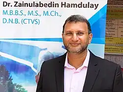 Zainulabedin Hamdulay (born 15 January 1970) is an Indian cardiac surgeon.[1][2][3] He is the joint secretary and treasurer at Indian Association of Cardiovascular (IACTS).[4] He is the director of cardiothoracic and vascular surgery at Global Hospital, Parel, Mumbai.[5][6][7][8] He is also a Founder of Hamdulay Heart Foundation.[9][10] Hamdulay has attended over 7,000 cardiac surgeries.[1][11][12][13][14]