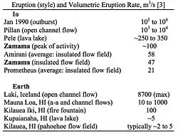 - In general, Io's eruptions have larger volumetric fluxes and active areas than terrestrial volcanoes, compared with volcanoes of the same eruption style.[5]