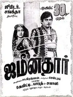 Zamindar is a 1952 Indian Tamil-language film directed by P. V. Krishnan[1] and written by Jalakantapuram. The film was jointly produced by Jupiter Pictures and Sangeetha Pictures. It stars S. A. Nataraj and Madhuri Devi. The film was released on 30 August 1952,[2] and was commercially unsuccessful.[3][4]