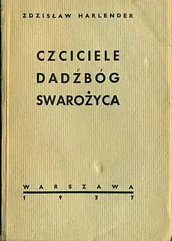 Harlender published five books from 1933 to 1939: two on economics, one a war memoir, and the last on politics. In Czciciele Dadźbóg Swarożyca (lit.'Worshipers of Dadźbóg Swarożyc') from 1937, he lays out his vision for the revival of the pre-Christian Slavic religion.[1] Although a nationalist and a neopagan, he stood outside of the Polish neopagan milieus of his time.[2]