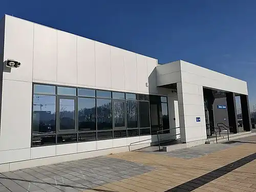 In June 2022, deadline for completion of the entire complex was moved to 30 September 2022.[8] The works continued to drag on, so the Chinese investor replaced the sub-contractors. The station was equipped with elevators in March 2023.[15]