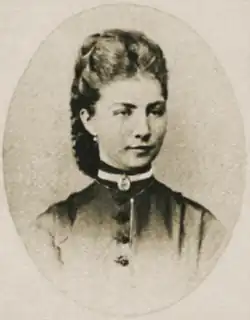 Zinaida Nikolaevna Nekrasova (Russian: Зинаи́да Никола́евна Некра́сова; born Fyokla Anisimovna Viktorova; 1846 – 25 January 1915) was the colleague and wife of the Russian poet, publicist, and public figure Nikolay Alekseevich Nekrasov. Almost nothing is known about her childhood and youth. There are various versions about her birth date, origins, and the circumstances of her meeting with the poet. The young woman met him in 1870, and they immediately became close. Nekrasov did much to provide her with a proper education, introducing her to his circle of close friends and relatives. Zinaida Nikolaevna carried out some of the poet's assignments related to the editing and publication of his works.