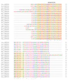 Homologs of the ZNF684 gene have been found across eukaryotes and bacteria species.[17] Strict orthologs were only found within placental mammals. The gene is also closely related to the paralog ZFP25 in humans.[18] Across the various species in which ZNF684 strict ortholog is present, conservation of C2H2 binding sites and the Kruppel-associated box is apparent (Figure 3-4).[19] The list of the various mammalian placental species are summarized in Table 1 by their median date of divergence from Homo sapiens.
