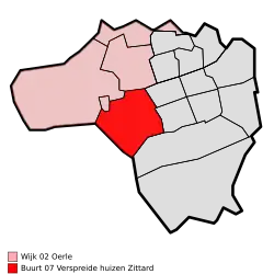 Zittard is located two kilometres south of the village Oerle and two kilometres east of the residential area Veldhoven Dorp. The hamlet lies along a road with the same name, which connects the hamlet Zandoerle with the hamlet Schoot. Southwest of Zittard flows the stream Poelenloop.[3]