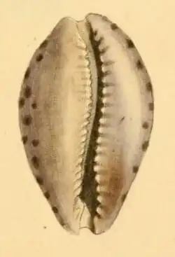 - ^ Gray, J.E. (1824–1828). Monograph on the Cypraeidae, a family of testaceous Mollusca. Zoological Journal. 1(1): 71-80, pl. 7