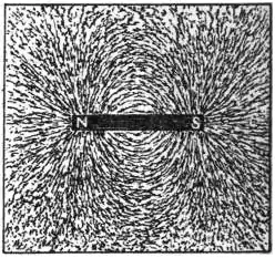If a magnet is dipped into a mass of iron filings and withdrawn, filings cling to certain parts of the stone in moss-like tufts, other parts remaining bare. There are generally two regions where the tufts are thickest, and the attraction therefore greatest, and between them is a zone in which no attraction is evidenced. The regions of greatest attraction have received the name of poles, and the line joining them is called the axis of the magnet; the space around a magnet in which magnetic effects are exhibited is called the field of magnetic force, or the magnetic field.
