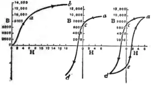 - ↑ E. G. Warburg, Wied. Ann. 1881, 13, 141; Ewing, Phil. Trans., 1885, 176, 549; Hopkinson, Phil. Trans. 1885, 176, 466. For a simple proof, see Ewing, Magnetic Induction (1900), p. 99. Hopkinson pointed out that the greatest dissipation of energy which can be caused by a to-and-fro reversal is approximately represented by Coercive force × maximum induction /π.