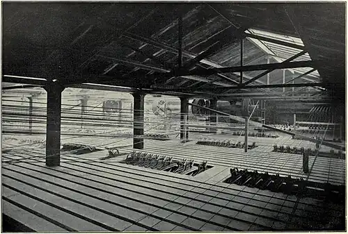 The old way of producing lightning was to blow lycopodium or powdered resin with bellows through a flame, and this is still used in realistic effects of conflagrations. More effective lightning is now made by flashing the electric light behind a scene painted with clouds, in which a zigzag aperture has been cut out and filled with a transparent substance. Thunder is made by shaking large sheets of iron. Wind is imitated by a machine with a cogged cylinder, which revolves against coarse cloth tightly stretched. The sound of rain is produced by shaking parched peas in a metal cylinder. - ↑ The word ludi seems sometimes to include, sometimes to exclude, dramatic performances. Its meaning in a particular instance depends on the context.