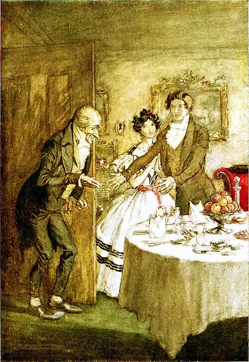 ‘Thankee. He knows me,’ said Scrooge, with his hand already on the dining-room lock. ‘I’ll go in here, my dear.’