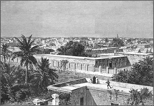 At the defile of Silsile, or the "Chain," where the valley, 4,000 feet across, appears to have formerly been barred by an iron chain, the landing-stages adjoin the old quarries which supplied blocks of stone and statues for the palaces of the Pharaohs. A sphinx's head is still to be seen here not yet detached from the rock. From this point the mountains begin to diverge on both sides, the river winding in a plain about 9 miles broad, the first below the cataract that affords sufficient space for the site of a large town. Tere formerly stood Thebes of the hundred gates. Farther on the valley becomes wider, the distance from mountain to mountain varying from
