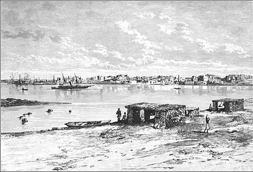A town of soldiers, merchants, and slaves, Khartum has no remarkable monuments, and it is surrounded on all sides by spaces which, if not absolute wastes, are, at least, uncultivated and treeless. At the period of the Beja rule, the banks of the two Niles were said to be shaded with an uninterrupted forest of palms festooned with vines. Khartum is not a healthy town, at least during the portion of the year when the moist winds blow, increasing the waters of the rivers.