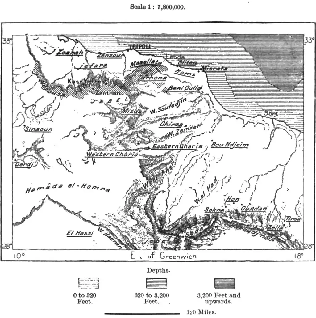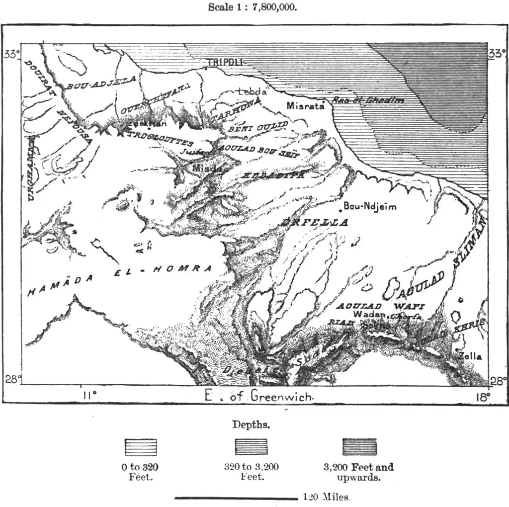 The exploration, one might almost say the discovery, of Tripolitana, remains still to be achieved. Although since the journey of Hornemann in the lust century, the country has been visited by such men as Lyon and Ritchie, Denham, Oudney