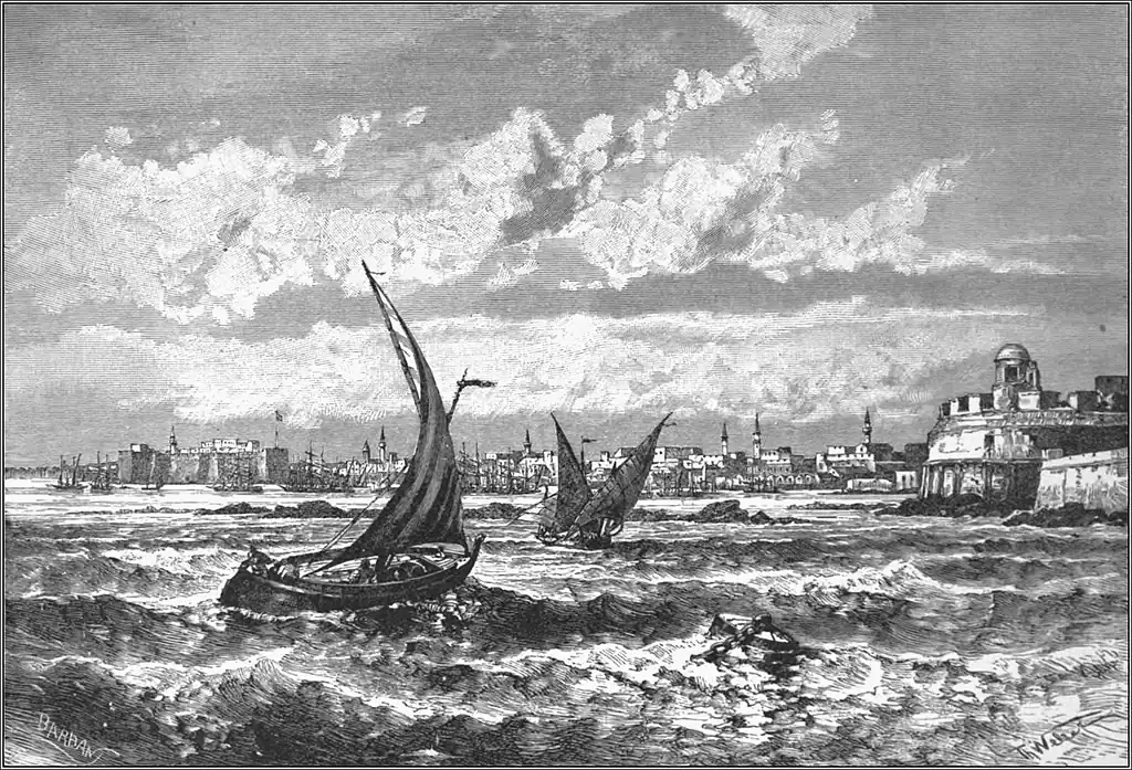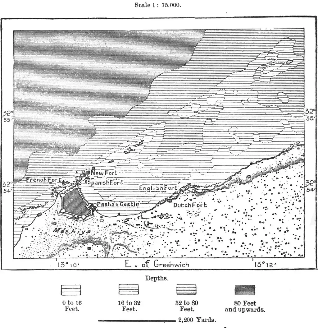 Farther removed from Europe than Mauritania, and possessing but a small extent of arable lands, the seaboard of Tripolitana could never have developed much commercial life throughout the historic period. Vessels doubling the projecting headlands of Numidia and Cyrenaica, and sailing southwards, found the desert in many places already encroaching on the marine waters. For some hundreds of miles the coast is low and sandy, or else fringed with reefs, while swamps and lagoons stretch far inland, separated from the sea by narrow strips of coastlands. These are often scarcely to be distinguished from the surface of the water, and the Syrtes were especially dreaded by mariners, owing to their surf-beaten shores, the exhalations from the surrounding lagoons, and the savage character of the local tribes.