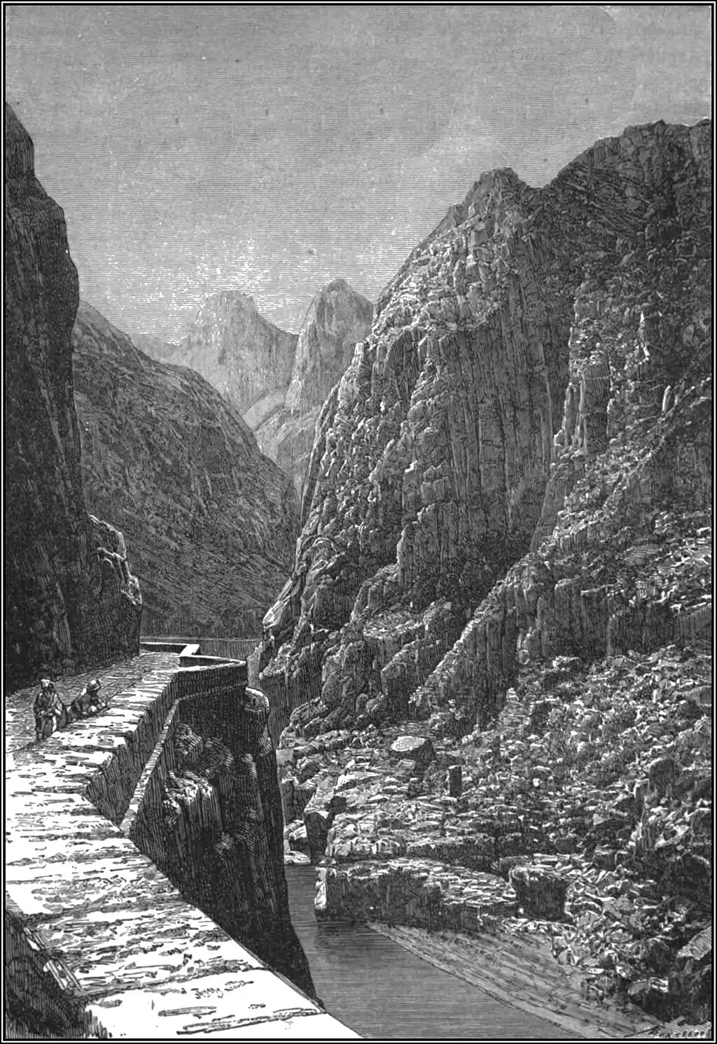 The mountains of Upper Kabylia are disposed in such a way as to form a regular semicircle round the border of this region. Coast ranges, such as the basaltic promontory of Jinet, the limestone Dellys chain, and the crests of Azeffun, complete this extensive orographic system, which is broken only by difficult passes and the route opened in the north-west between the Lower Seban and Isser river valleys. While Great Kabylia from Bougie to Menerville is completely encircled